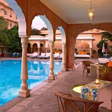 The haveli also features a beautifully designed swimming pool, which mirrors the traditional stepwells of Rajasthan, offering a perfect spot to relax after a day of sightseeing. There's a well-equipped fitness center, and for those seeking deeper relaxation, the spa offers a selection of massages and wellness treatments that blend ancient Ayurvedic techniques with modern therapies.
