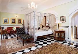 The guest suites and rooms at Samode Haveli are each uniquely designed, combining traditional elements with modern comforts. No two rooms are alike, yet all feature rich textiles, vintage four-poster beds, and intricately patterned tiles. High ceilings, arched windows, and private balconies offer serene views of the courtyards, fountains, or gardens. Air conditioning, plush bedding, and well-appointed bathrooms ensure a comfortable and luxurious stay, while the ambiance maintains the feel of an aristocratic home rather than a commercial hotel.